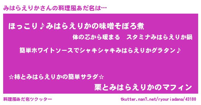 | 胡散臭い通販商品みたいなあだ名 | 『全米が絶賛したサプリメント…その名も「みはらえりか」』 |