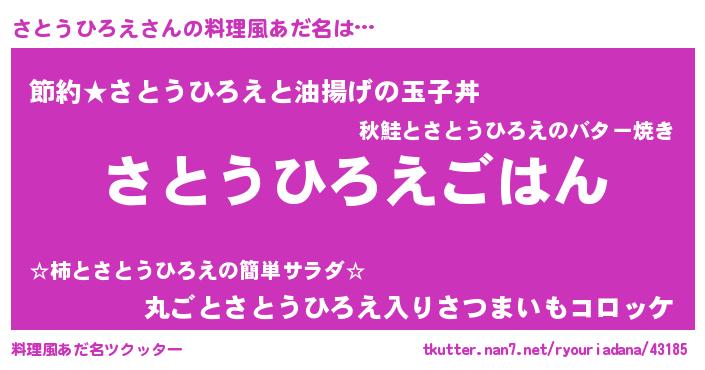 | 恥ずかしいあだ名 | 『プリティーさとうひろえ』『さとちん』 |