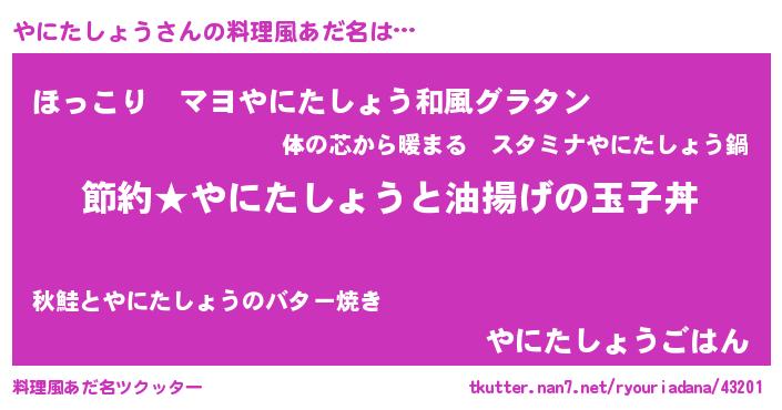 | ヘコむあだ名 | 『やにもー』『レバニラ』『やにっ子』 |