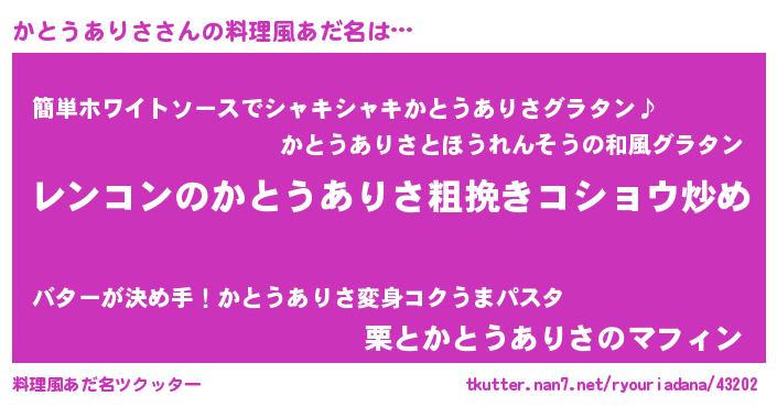 | 意味不明あだ名 | 『自称かとうありさ』 |