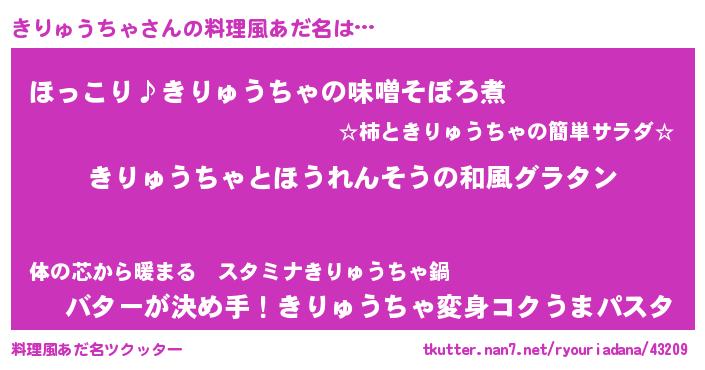 | 女子向けラノベタイトル風あだ名 | 『きりゅうちゃの玉の輿計画!』 |