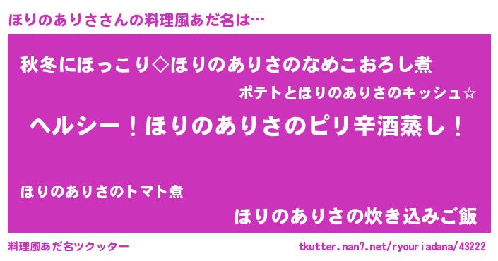 | 男性向けラノベタイトル風あだ名 | 『Re:ほりのありさから始める異世界生活』 |