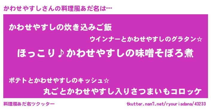 | 胡散臭い通販商品みたいなあだ名 | 『必ず成功する霊験あらたかなお札…その名も「かわせやすし」』 |