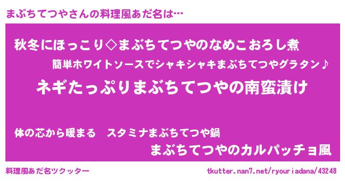 | 胡散臭い通販商品みたいなあだ名 | 『億万長者になれるブレスレット…その名も「まぶちてつや」』 |