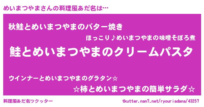 | 女子向けラノベタイトル風あだ名 | 『死神めいまつやまの再婚』 |