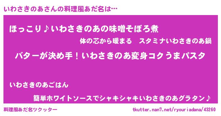 | ピコ太郎風あだ名 | 『イイ太郎』『イコ太郎』『イワ次郎』 |