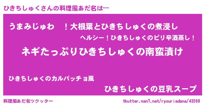 | ピコ太郎風あだ名 | 『ヒコ十郎』『ピヒ五郎』『ヒキ二郎』 |