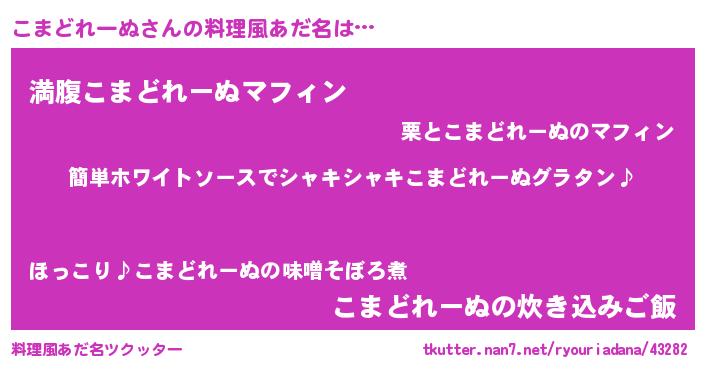 | 男性向けラノベタイトル風あだ名 | 『こまどれーぬの嫁は女の子じゃないと思った?』 |