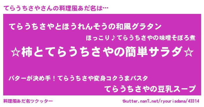 | ヘコむあだ名 | 『てらっ子』『てらもー』『なまこ酢』 |