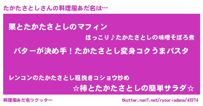 | ヘコむあだ名 | 『たかもー』『たかたさとし(遠い目)』 |