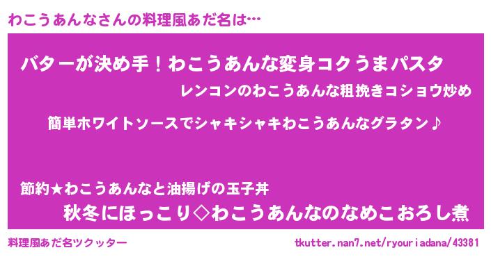 | 男性向けラノベタイトル風あだ名 | 『わこうあんなの嫁は女の子じゃないと思った?』 |