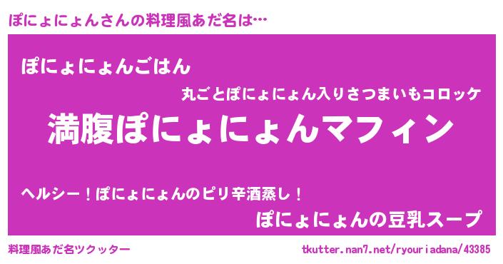| 女子向けラノベタイトル風あだ名 | 『異世界で失敗しない100のぽにょにょん』 |