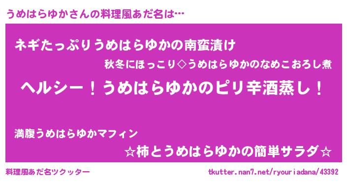 | ヘコむあだ名 | 『うめにー』『うめはらゆか(震え声)』 |