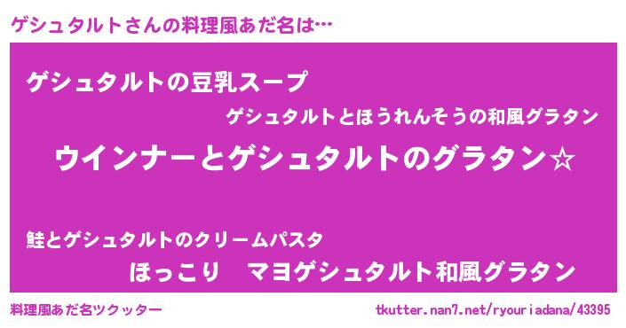 | 意味不明あだ名 | 『ゲシュタルトフォーエバー』 |