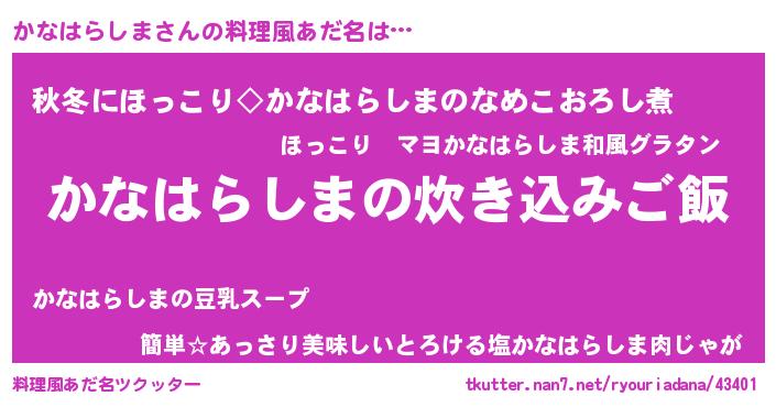 | ヘコむあだ名 | 『かなはらしま(遠い目)』『かな太郎』 |