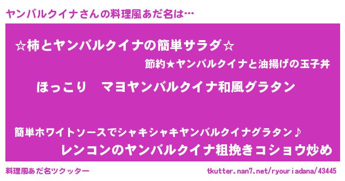 | ヘコむあだ名 | 『ヤンにー』『ヤンぷりん』『牛乳』 |