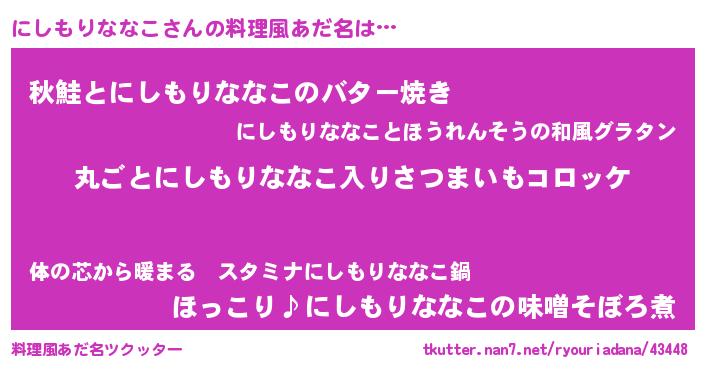 | ヘコむあだ名 | 『にしもりななこ(震え声)』『にしふぇ~』 |