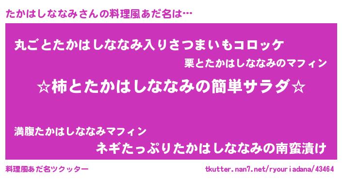 | ヘコむあだ名 | 『たかふぇ~』『たかはしななみ(遠い目)』 |