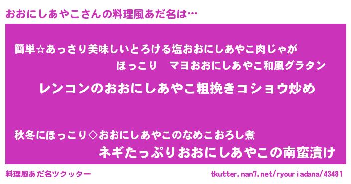 | 意味不明あだ名 | 『自称おおにしあやこ』 |