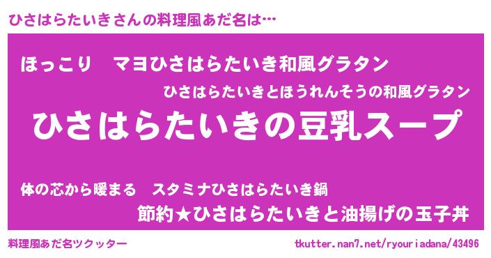 | 意味不明あだ名 | 『とにかく怪しいひさはらたいき』 |