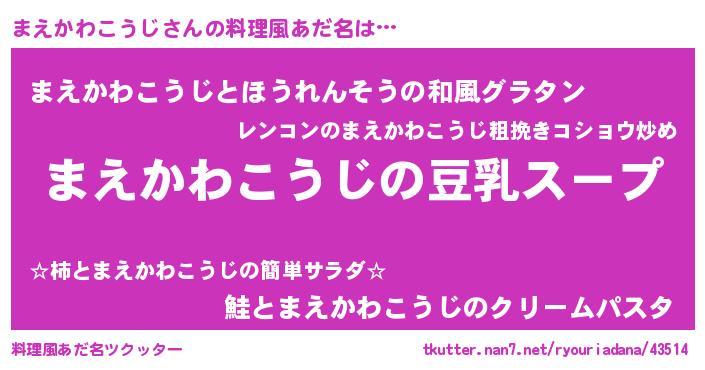 | ヘコむあだ名 | 『まえっ子』『まえかわこうじ(笑)』 |