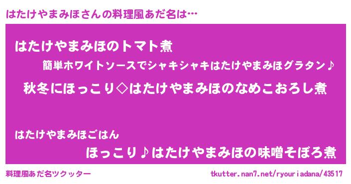 | 男性向けラノベタイトル風あだ名 | 『はたけやまみほに滅ぼされるだけの簡単なお仕事です』 |