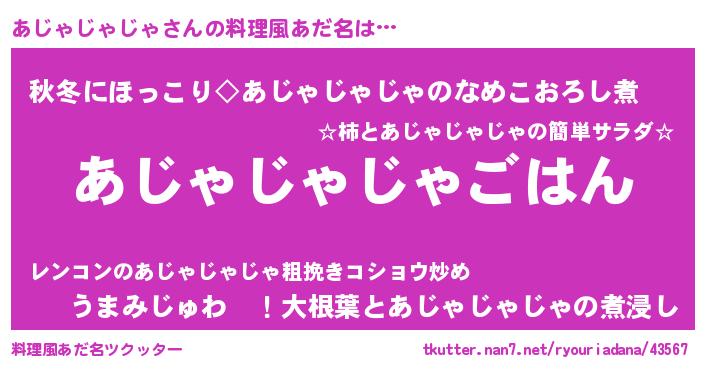 | 胡散臭い通販商品みたいなあだ名 | 『幸せが訪れる高級そうな皿…その名も「あじゃじゃじゃ」』 |