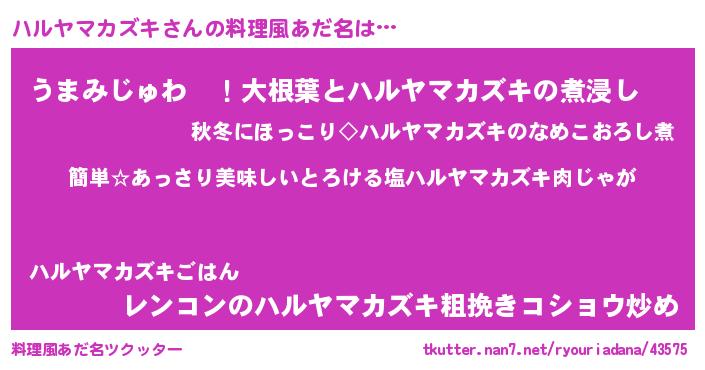 | 意味不明あだ名 | 『永久保存ハルヤマカズキ』 |