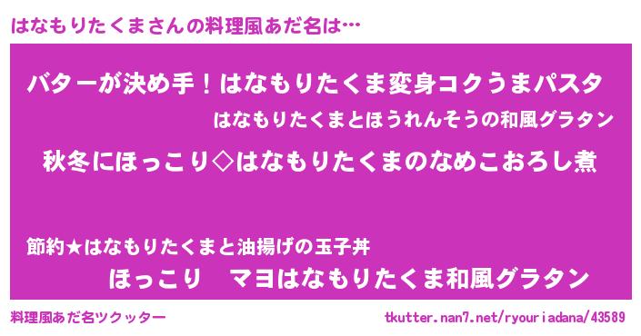 | ヘコむあだ名 | 『はなにー』『はなもりたくま(笑)』 |