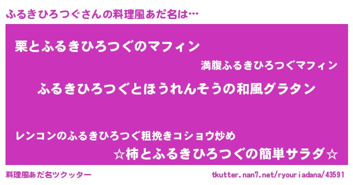 | 女子向けラノベタイトル風あだ名 | 『ふるきひろつぐの玉の輿計画!』 |