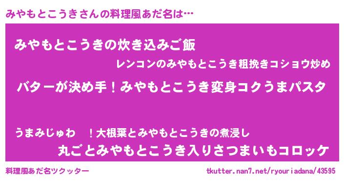 | ヘコむあだ名 | 『なまこ酢』『みやもとこうき(小並感)』 |