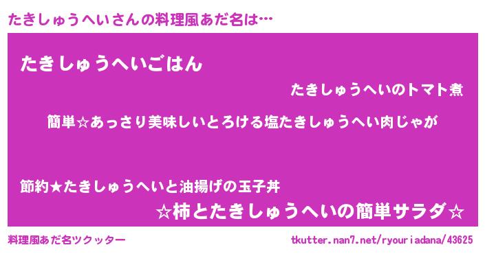 | 意味不明あだ名 | 『永久保存たきしゅうへい』 |