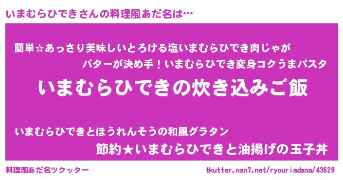 | ヘコむあだ名 | 『いまむらひでき(小並感)』『いまもー』 |