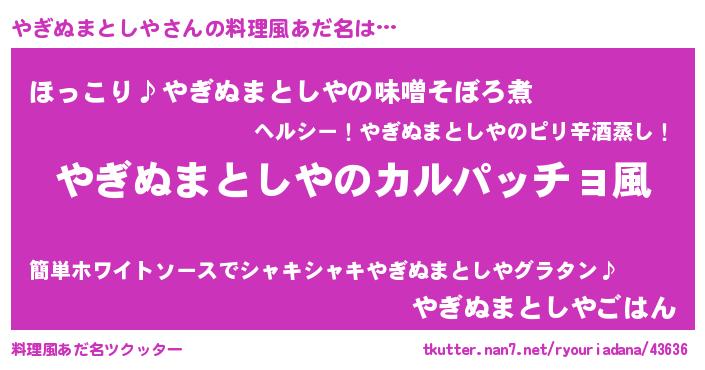 | 意味不明あだ名 | 『住所不定無職やぎぬまとしや(43歳)』 |