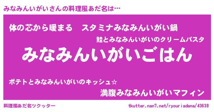 | ヘコむあだ名 | 『豆乳』『みなみんいがい(笑)』 |