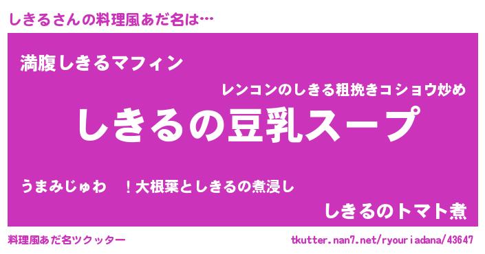 | ヘコむあだ名 | 『しきぷりん』『しきる(笑)』 |