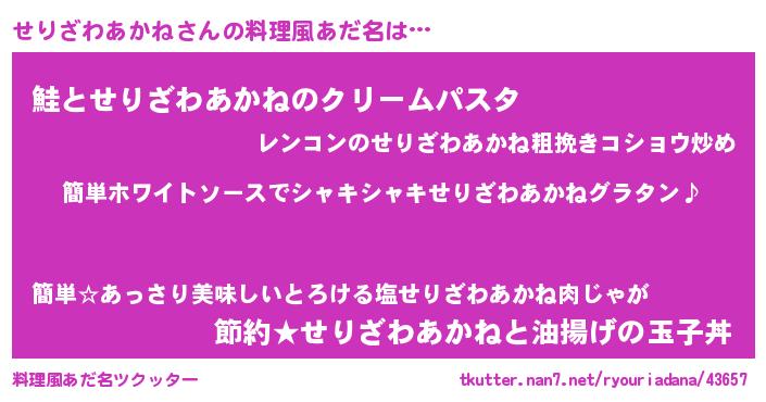 | 男性向けラノベタイトル風あだ名 | 『せりざわあかねの嫁は女の子じゃないと思った?』 |