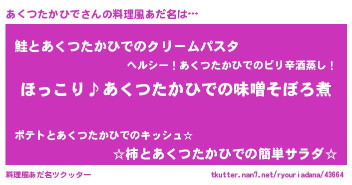 | 男性向けラノベタイトル風あだ名 | 『あくつたかひでの憂鬱』 |