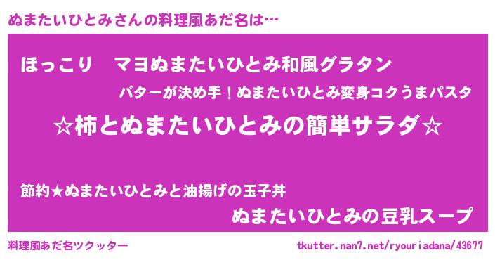 | 意味不明あだ名 | 『住所不定無職ぬまたいひとみ(40歳)』 |