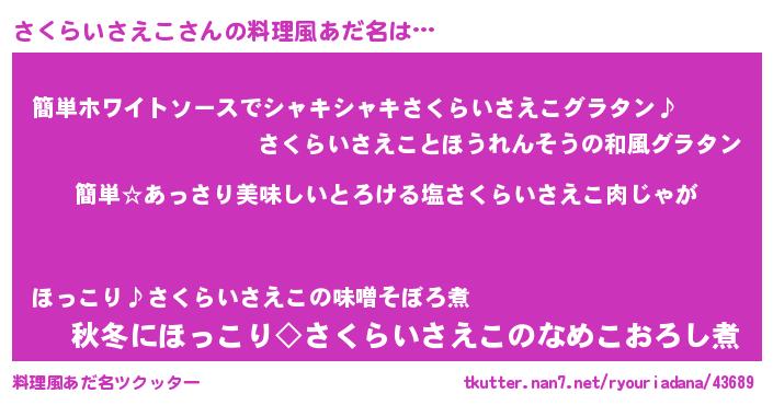 | ヘコむあだ名 | 『さくらいさえこ(笑)』『さくっちょ』 |