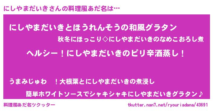 | 意味不明あだ名 | 『自称にしやまだいき』 |