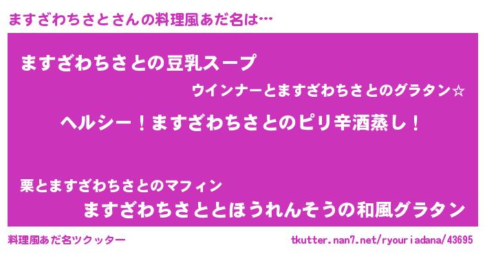 | 男性向けラノベタイトル風あだ名 | 『Re:ますざわちさとから始める異世界生活』 |