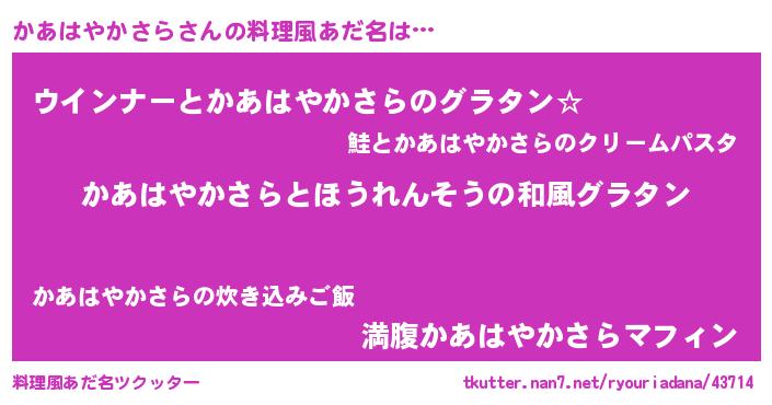 | ヘコむあだ名 | 『酢こんぶ』『かあはやかさら(笑)』 |
