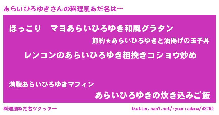 | ヘコむあだ名 | 『あらもー』『あらいひろゆき(遠い目)』 |