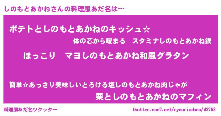 | 男性向けラノベタイトル風あだ名 | 『この素晴らしい世界にしのもとあかねを!』 |