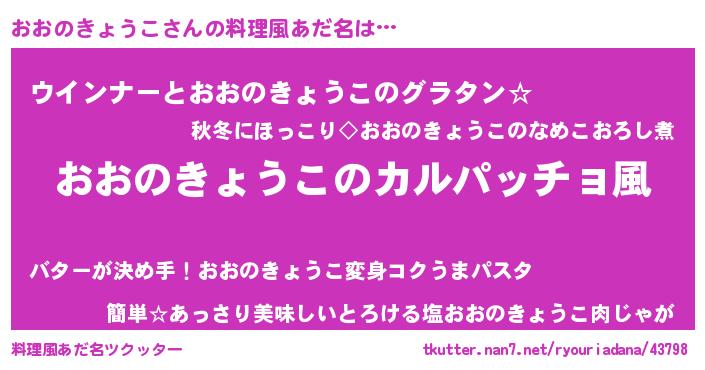 | 意味不明あだ名 | 『住所不定無職おおのきょうこ(39歳)』 |
