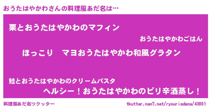 | 胡散臭い通販商品みたいなあだ名 | 『あなたにだけ特別に提供する100年もののヴィンテージワイン…その名も「おうたはやかわ」』 |