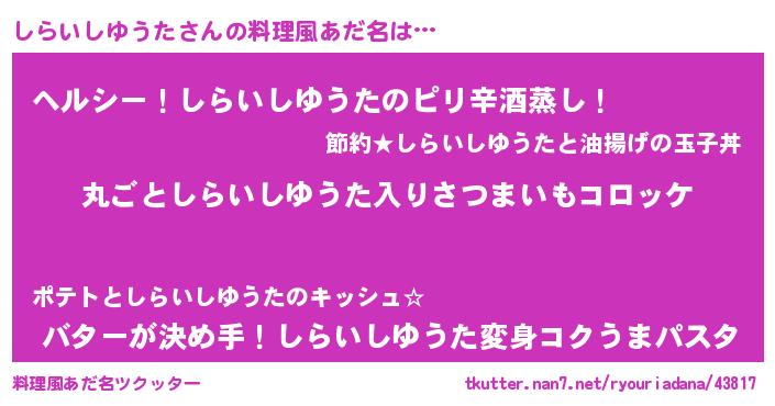 | 恥ずかしいあだ名 | 『シライシユウタデラックス』『しらちん』 |