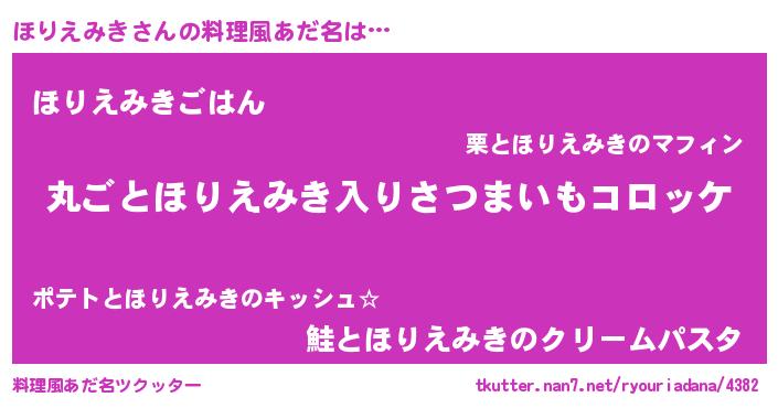 | 女子向けラノベタイトル風あだ名 | 『乙女ゲームの破滅フラグしかない悪役ほりえみきに転生してしまった…』 |