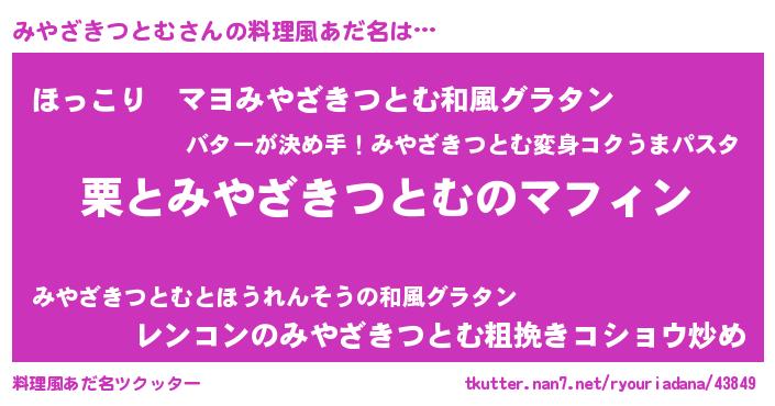 | ヘコむあだ名 | 『みやざきつとむ(遠い目)』『みやふぇ~』 |